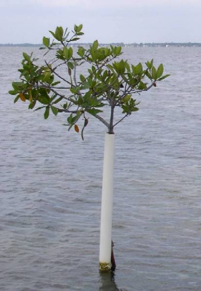 First principle of Riley Encased Methodology is the isolation of individual propagules inside the patented cylindrical encasement device, which creates a controlled environment favorable to early plant development. Trees are protected from harsh environmental factors including wrack, debris, wind and wave activity, predation by macroinvertebrates and vertebrates, and unintentional damage from human interaction.